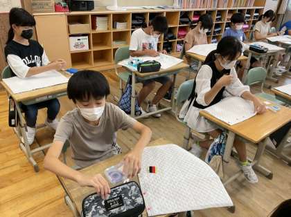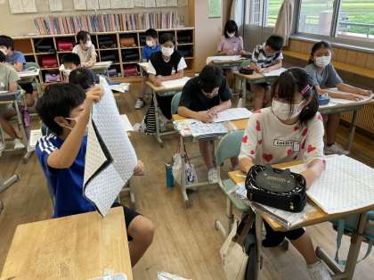家庭科の学習では、トートバッグを作り始めました。久しぶりの裁縫で「玉結びがうまくいかない」「玉止めってどうやるんだっけ」などと、多くの子供たちが手こずっていました。休日に、家で練習してみるのもいいですね。