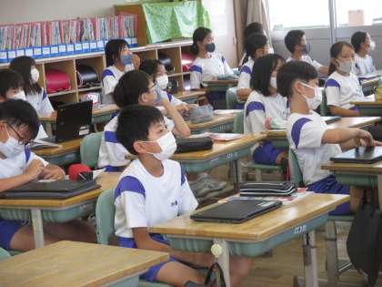 外国語では、3ヒントクイズを作成中です。 ヒントの順番を考えながら作ります。