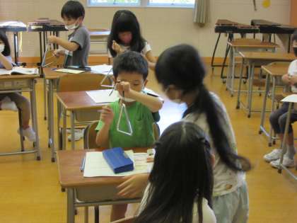 1年竹組 音探し 公開日 2021/09/09 更新日 2021/09/09 1年生 トライアングルの鳴らし方を変えると、どんな音がなるのかを調べました。一つの楽器から、たくさんの音色を見つけられました。