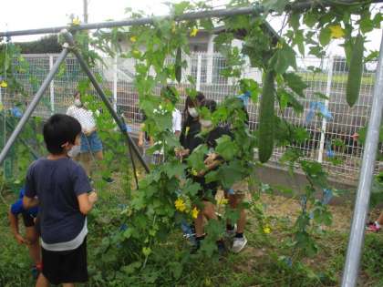 花を一つ一つ見比べながら、それぞれの違いを見つけています。