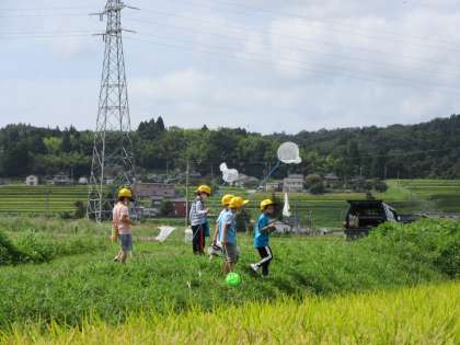 生活科の学習で、仲良くなる虫を捕まえにいきました。一人じゃなかなか難しいですが、友達と協力して捕まえました。