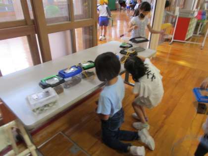 1年生 生活科 むしとなかよし 公開日 2021/09/13 更新日 2021/09/13 1年生 捕まえた虫や生き物が気になって仕方ない様子です。 友達の虫かごも覗き合って、元気かどうか確認しています。