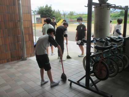 5年生 稲刈りの後は… 公開日 2021/09/14 更新日 2021/09/14 5年生 出入り口として5年生が通っていたところが土で汚れていたことに気付いた子供たちが進んで掃除をしていました。 いきいきと働く高学年のきらきらな姿です。