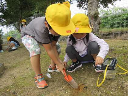 1年竹組 むしさんたち、ありがとう 公開日 2021/09/17 更新日 2021/09/17 1年生 生活科でお世話した虫たちに「ありがとう」を伝える日でした。 自然にかえしたり、そっと土に埋めてあげたり、はたまた世話するため世話するための準備をしたり・・・。 これからも生き物を大切にできるといいですね。