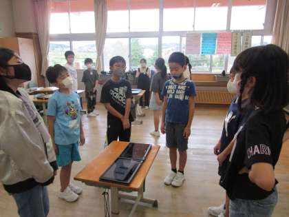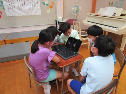 相手パートにつられず、自分のパートを自信をもって歌えるように、パートリーダーを中心にグループ練習をしました。輪になって、クロームブックで正しい音を聞いて真似たり、全員の声を合わせて何度も歌ったりしました。レベルアップできました。
