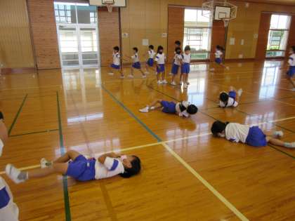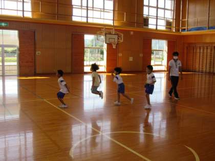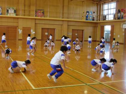 ものすごく元気なカエルになったり、ころころ転がるタイヤになってみたり・・・のびのび体を動かしています。