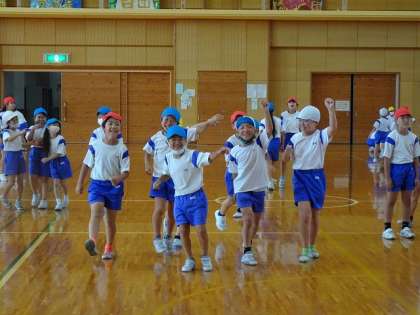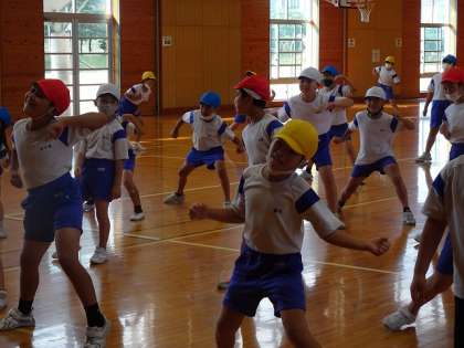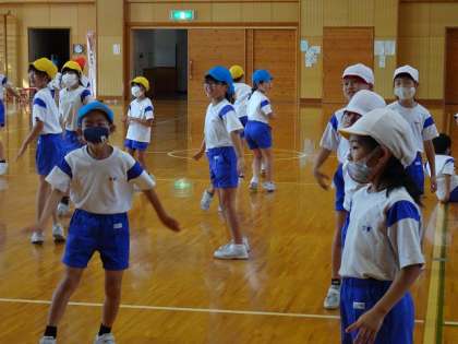 体全体を使って、いろいろな動きをしました。 音楽に合わせて、友達の動きを楽しそうに真似していました。