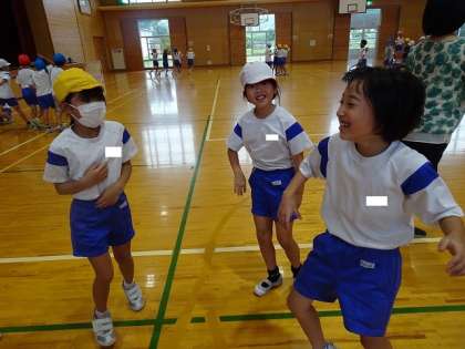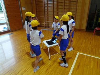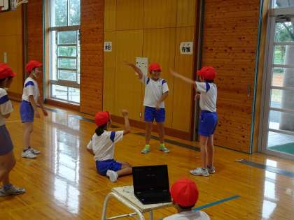 グループごとに曲に合ったダンスを考えています。 いろいろな動きを試していました。