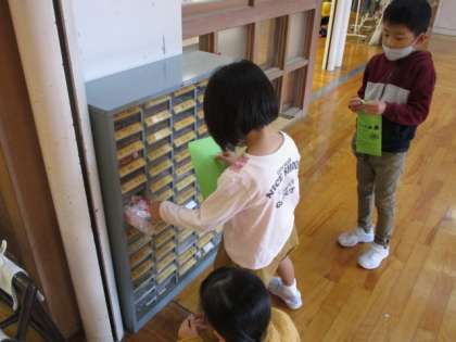 毎週水曜日は、ベルマーク収集の日です。 家庭から持ってきたベルマークを、番号ごとに仕分けて入れています。