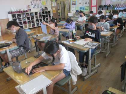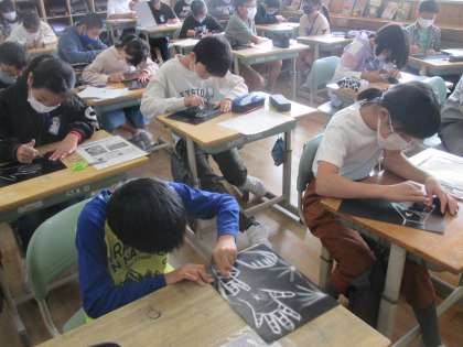 真っ黒に塗られた紙を消しゴムで消すことで白い部分を出しながら手を描いています。