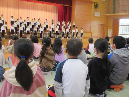 4年生さんのすてきな歌声を、耳と心を働かせ、じっくり聴いていました。進んで感想を伝えることもできました。
