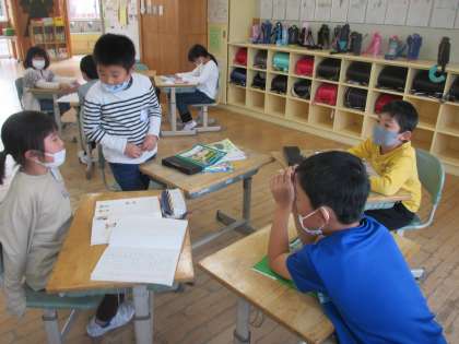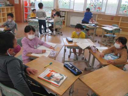 友達に聞いてほしいことを考え、グループ内で相談者を交代しながら、話合いを進めました。お兄ちゃんの誕生日プレゼントを何にするか悩んでいる友達に、「今までに、どんな物をプレゼントしたことがありますか。」や「お兄ちゃんが好きな物は何ですか。」と質問するなど、友達の相談内容をよく聞き、親身になって考える姿が見られました。