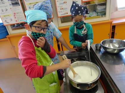 「スーパーの豆腐よりおいしい!」と、出来たての豆腐を味わって食べていました。