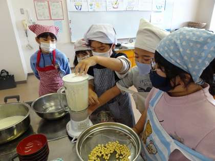 「スーパーの豆腐よりおいしい!」と、出来たての豆腐を味わって食べていました。