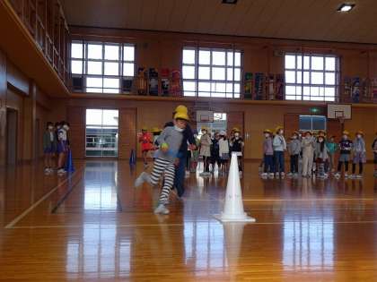 運動委員会の企画で、昼休みにリレーをしました。 男子対女子の対決で盛り上がっていました。