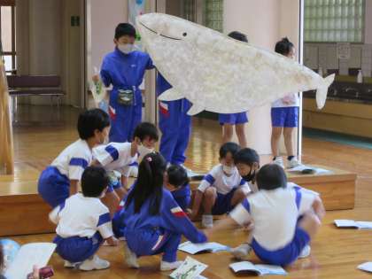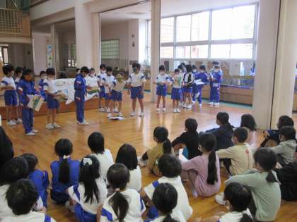 たくさん練習してきた「くじらぐも」の音読を、2年生と竹組のみんなに聴いてもらいました。