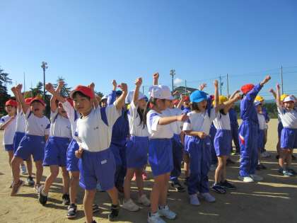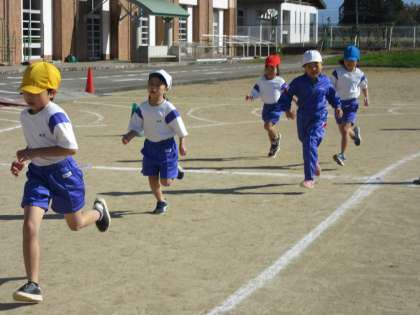 代表のかけ声で気合いを入れた後は、みんなは力いっぱい走りました。