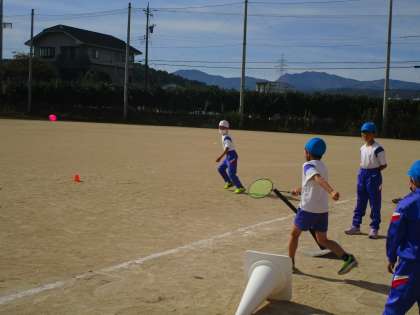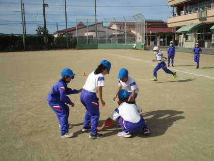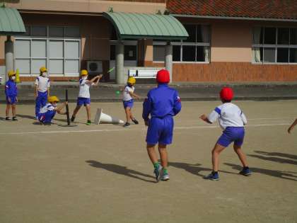 3年生 ラケットベースボール 公開日 2021/11/08 更新日 2021/11/08 3年生 体育ではラケットベースボールという競技に挑戦中です。 打つ・走る・守るといったベースボール型ゲームの基本の動作を生かしてゲームを進めます。 これから練習していきましょう。