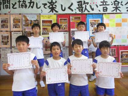 4年生 マラソン大会の受賞者 公開日 2021/11/08 更新日 2021/11/08 4年生 11月2日に行ったマラソン大会の受賞者です。男子1位から8位受賞者、女子1位から8位受賞者と昨年度のタイムよりのびたのび賞受賞者です。がんばったみなさんの笑顔が素敵です。