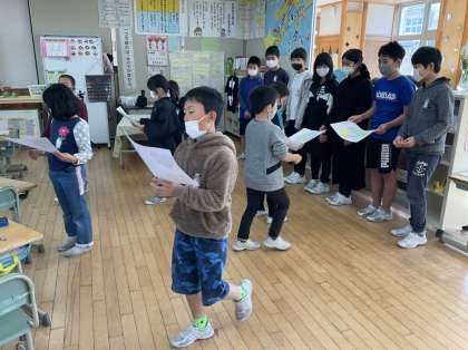 2年生が、学習したことを発表しにきてくれました。6年生は、懐かしそうに見届けた後、がんばって発表してくれた2年生に「お手紙」を書いて渡しました。