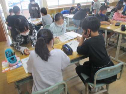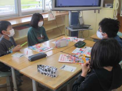 どの品物の組み合わせがよいか班の友達と相談しています。