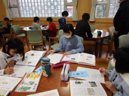 4年生 国語 百科事典の使い方 公開日 2021/11/15 更新日 2021/11/15 4年生 図書室へ行き、学校司書の先生から百科事典の使い方を教えていただき、実際に百科事典を使ってお題として出された言葉を調べました。