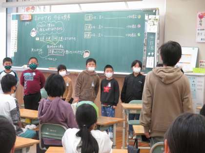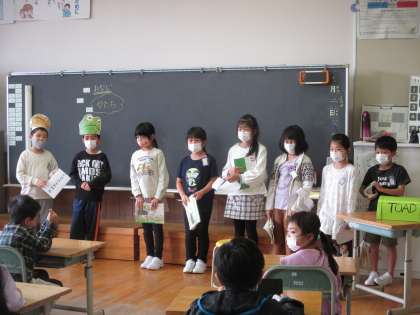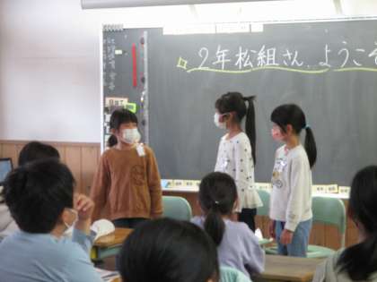 2年生 国語「お手紙」音読劇 松組 公開日 2021/11/15 更新日 2021/11/15 2年生 子供たちが話し合って決めた、1・6年生への発表が終わりました。どのクラスでも、子供たちの音読の頑張りやよさを伝えてもらい、さらに自信を高めていました。