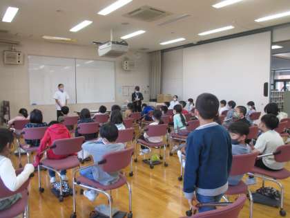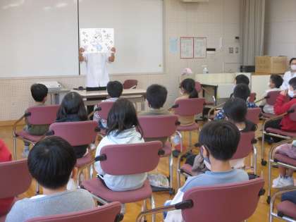 2年生 生活科 「柳澤屋」体験学習会 その1 公開日 2021/11/19 更新日 2021/11/19 2年生 今日は楽しみにしていた柳澤屋さんの体験学習会がありました。まずは、普段作っているお菓子の作り方やお店の様子を写真や動画で教えていただきました。また、「どうやって新しいお菓子を思いつくんですか」「どのお菓子がおすすめですか」などたくさんの気になっていたことを質問していました。