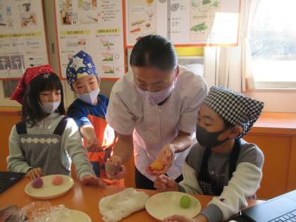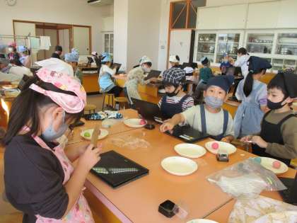 2年生 生活科 「柳澤屋」体験学習会 その2 公開日 2021/11/19 更新日 2021/11/19 2年生 家庭科室では上生菓子を作る体験をしました。まずは、お手本をしっかりと見て、自分の作りたいお花や葉っぱ、カボチャなど様々な形にしていました。 竹組の赤、白団の様子です。