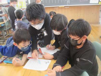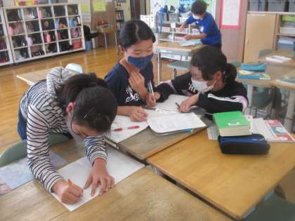 難しい問題に子供たちは四苦八苦。友達と教え合ったり、自分の力で解きたいとじっくり考えたりしていました。