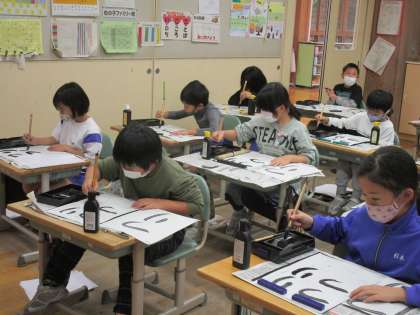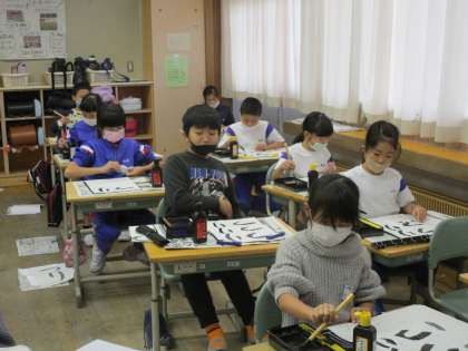 独特な丸みの書き方や2文字をおさめるバランスの取り方等、レベルがぐんと上がったので、みんな真剣です。
