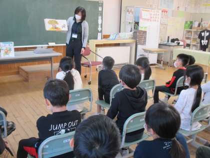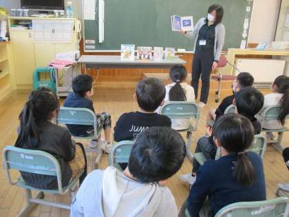 2年生 ほんの森学校訪問 松組 公開日 2021/11/29 更新日 2021/11/29 2年生 今年度も、ほんの森の職員の方が学校を訪問してくださいました。「千両箱をのんだおんどり」の素話では、お話を聞いて自分の頭の中で想像を膨らませ、言葉の面白さを感じていました。「秋から冬へ」をテーマに6冊の本を紹介してくださいました。「早く読みたい」「続きが気になる」と、子供たちは紹介していただいた本を読むことを楽しみにしています。
