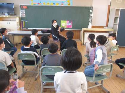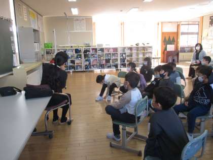 ほんの森の職員の方が学校を訪問してくださいました。素話では、お話を聞いて想像を膨らませ「次はこうなるんじゃないかな」とお話のおもしろさを感じていました。「おいしい料理めしあがれ」をテーマに6冊の本を紹介してくださいました。「料理をしてみたい!」「スープはどうなるんだろう」と、本に出てきた料理に興味をもっていました。また、昼休みには早速続きを読む子供たちもいました。
