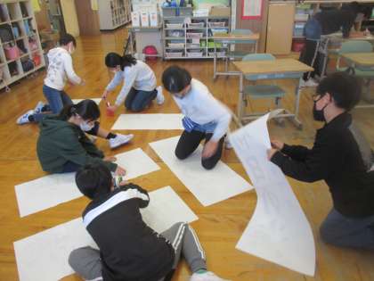 書き初めの練習に向けての準備を行いました。 大きな手本に悪戦苦闘しながら、丁寧に作りました。