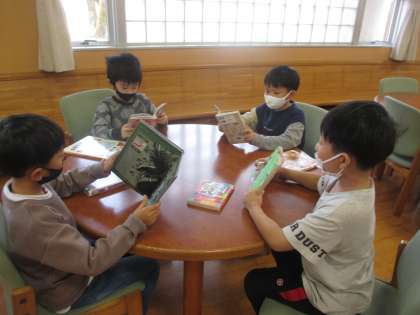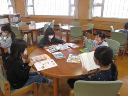 毎週図書室へ行き、それぞれが読みたい本を探して読書に親しんでいます。借りた本に集中して朝読書も毎日行っています。
