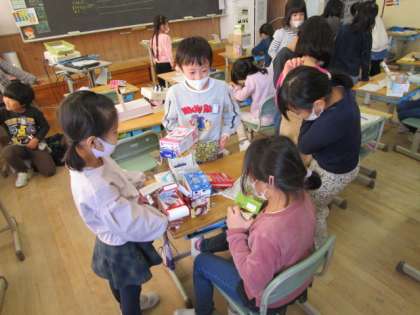 思いを込めて作った「はこでつくったよ」の作品鑑賞をしました。