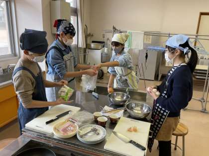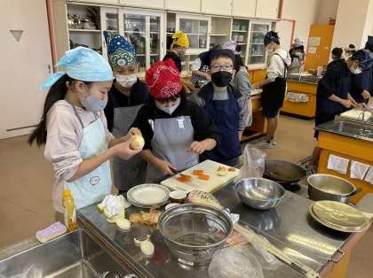 6年生 調理実習 竹組 7・8班の様子