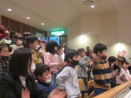1年生 ハートフルクリスマス 公開日 2021/12/09 更新日 2021/12/09 1年生 八尾高校のお兄さん、お姉さんに招待してもらい、曳山会館で行われた「ハートフルクリスマス」に参加してきました。 劇やクイズ、デジタル紙芝居が楽しく、夢中になりました。