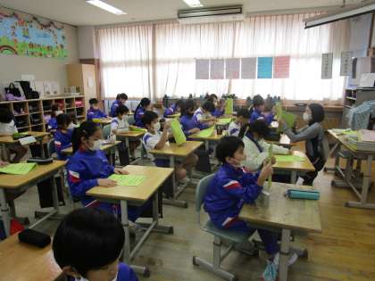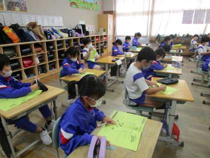 杉原小学校のクロームブックの約束をみんなで読んで正しい使い方について話し合いました。