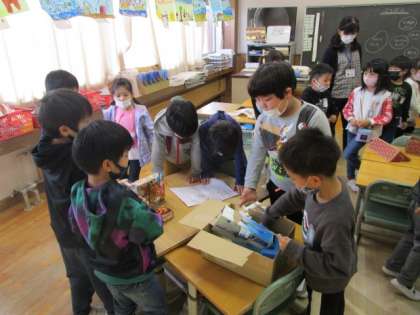 1年生生活科 あきのおもちゃまつり 公開日 2021/12/10 更新日 2021/12/10 1年生 今日は、「秋のおもちゃまつり」をしました。 ドングリを入れて作ったマラカス、落ち葉のこすり出し、ドングリ迷路、松ぼっくりのけん玉、やじろべえのレース等、子供たちが考えて作ったたくさんのおもちゃで、松組と竹組の教室を行き来して遊びました。 ルールを守って、楽しく遊び、片付けも協力して行うことができました。