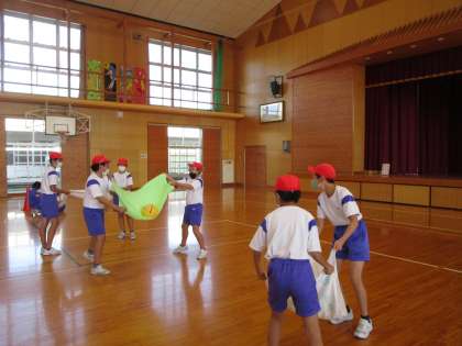 6年生 友達と心をつなぐ 公開日 2021/12/13 更新日 2021/12/13 6年生 体育では、体つくり運動に取り組んでいます。ペアの人と一緒に息を合わせて踊ったり、ボールを飛ばしたり・・・毎回ちがう活動を、子供たちも楽しんでいます。