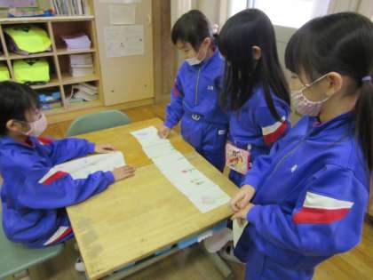 国語科の学習で、おみせやさんごっこを楽しみました。