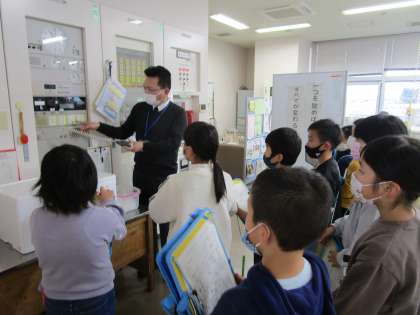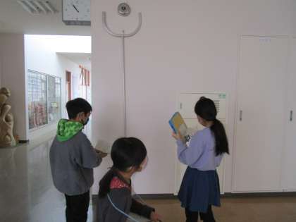 3年生 防火設備を探そう 公開日 2021/12/16 更新日 2021/12/16 3年生 社会科の学習で、校内にある防火設備探しを行いました。 よく見てみると、校内のあちらこちらに様々な設備がありました。 職員室にある機械や、消火栓の中身等も見せてもらうことができました。