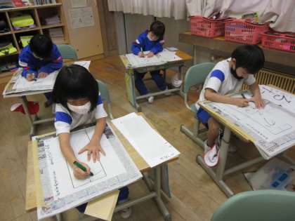 回数を重ねるごとに、字形が整ってきました。 今度は、線を太く、濃くできるように書いていきます。