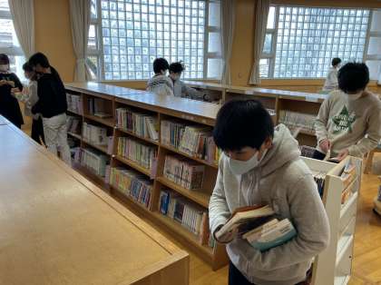 2学期も今週で終わります。今日は、冬休みの期間に読む本を図書室で選びました。各自が「期間中に読めそう」、「持ち帰って管理できそう」な冊数だけ借りていきます。各ご家庭で、子供たちと一緒に読書タイムを設けてみてはいかがですか?