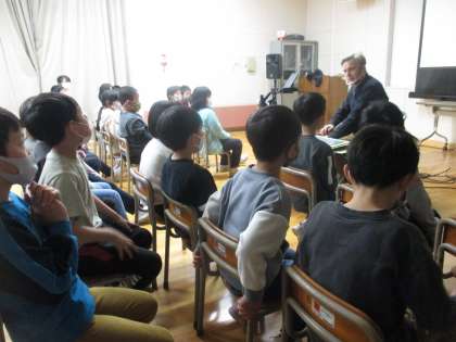 今日は楽しみにしていたクリスマスコンサートがありました。英語の歌を一緒に歌ったり、体を動かしたりしながら楽しんでいました。影絵では、次に何が出てくるのかと前のめりになったり、影絵のお話を盛り上げるギターの演奏に耳を傾けたりする姿も見られました。
