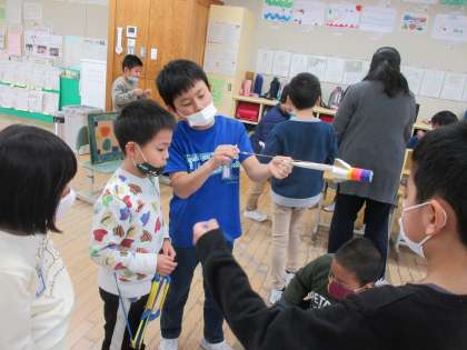 ブーメランガングループと、ゴムロケットグループの様子です。