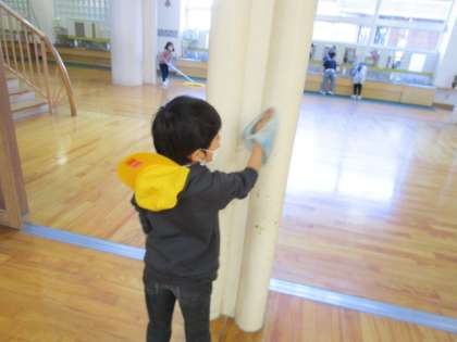 1年生松組 気持ちよく新年を迎えるために 公開日 2021/12/23 更新日 2021/12/23 1年生 今日は、1松の教室と教室前のオープンスペースの大掃除をしました。 普段の清掃では行き届いていない箇所を確認し、分担して取り組みました。 埃やチョークの粉がたくさん溜まっているのを見付け、一生懸命きれいにする姿に、たくましさと成長を感じました。 きれいになって教室も心もすっきりしましたね。 みんなの力のおかげで、よい年を迎えられそうです。