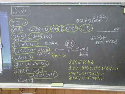 1年生松組 生活科「ふゆをたのしもう」 公開日 2022/01/12 更新日 2022/01/12 1年生 今日は、「冬ってどんな季節?」について話をしました。 「雪が降る」「寒い」「虫がいなくなる」「木から葉っぱがなくなる」など、たくさん知っていることがでました。 その後、杉の子広場に出て、発表で出たことが本当に見付けられるか確かめました。