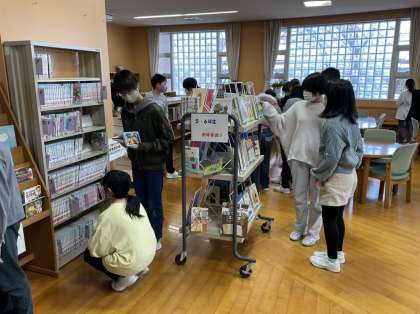 冬休み中に借りていた本を返却し、新しく本の貸し出しをしてもらいました。1冊をじっくり読みたい子や複数借りていく子など、自分に合った読み方を選んで借りていました。
